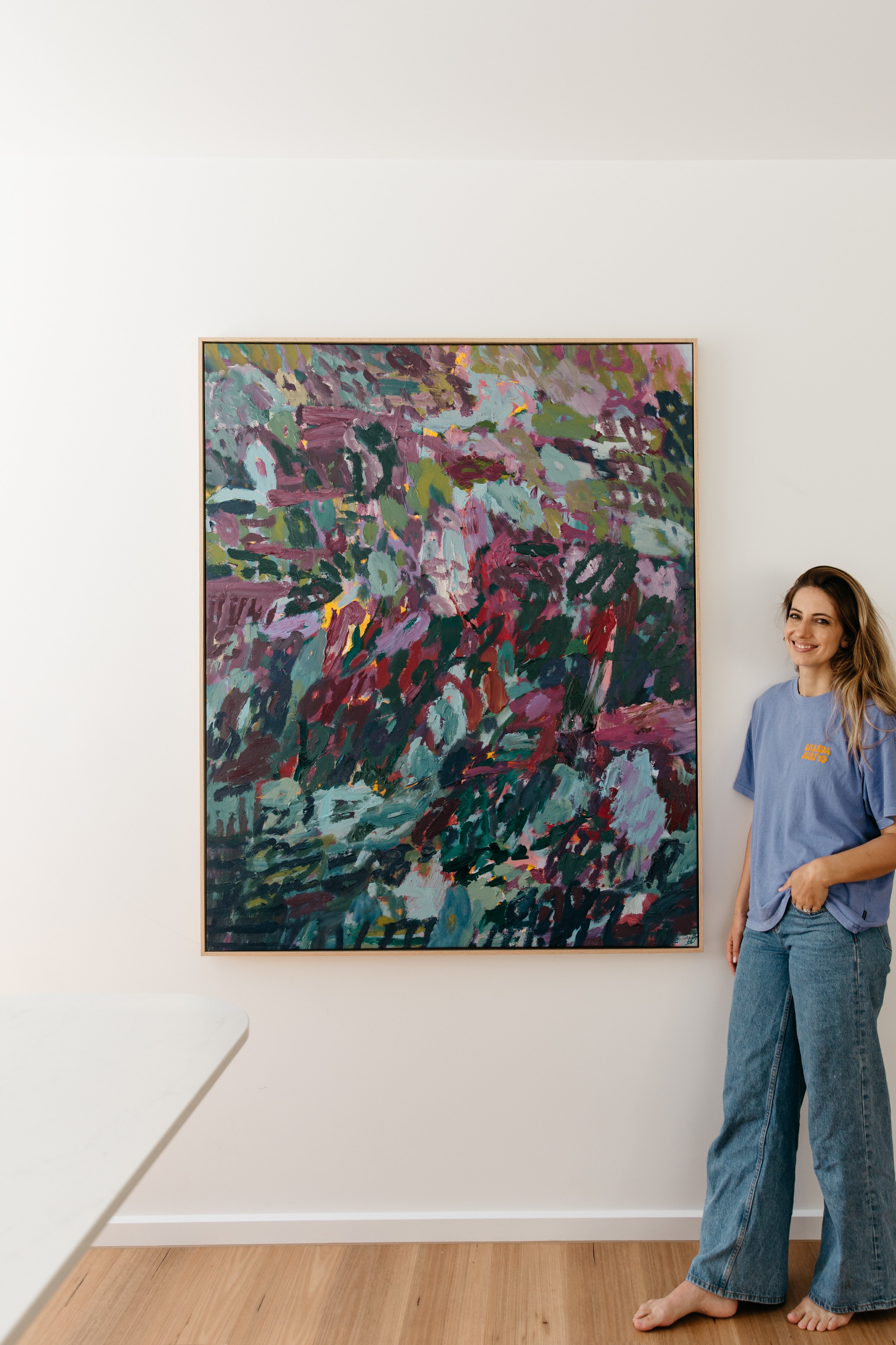 Of her work, Adele says, “Living in vibrant India for six months as part of my studies saw me fall in love with colour and the way it reflected joy across circumstances, something I continue to explore today in all my pieces. I love interpreting light, movement and emotion through layers of expressive strokes and marks, and am obsessed with this creative process.
