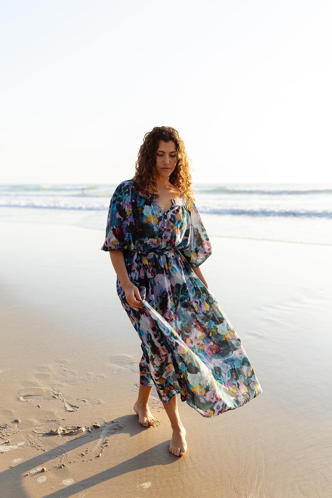 This flowing, floating maxi dress is made from a lightweight cotton, making it a dream to wear. It’s fixed with buttons down the front, which you can wear fully closed or unbuttoned to create a flattering V neckline. It also comes with an optional belt — tie it up to accentuate your curves or take it off if you prefer a looser fit. Perfect for Sunday brunches, barefoot walks on the beach, and celebrations in the sun, Daphne is your new wardrobe staple — and you’ll wonder how you ever lived without it.