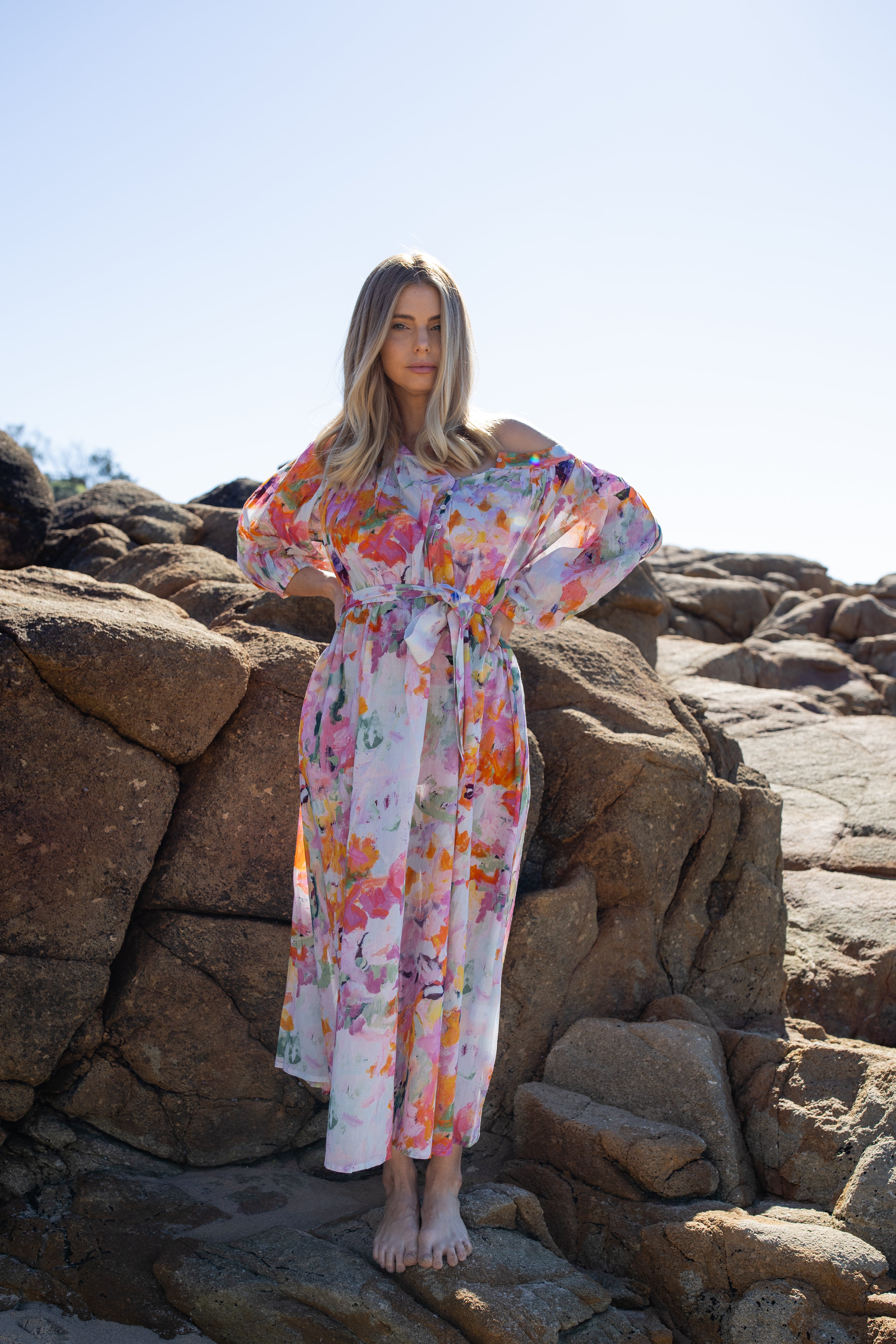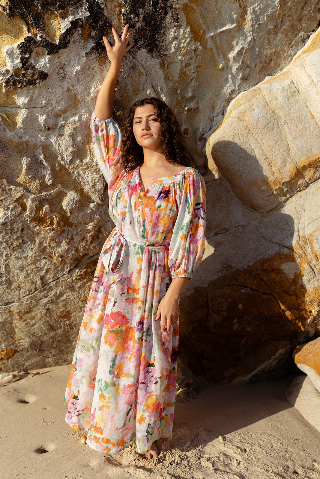 This flowing, floating maxi dress is made from a lightweight cotton, making it a dream to wear. It’s fixed with buttons down the front, which you can wear fully closed or unbuttoned to create a flattering V neckline. It also comes with an optional belt — tie it up to accentuate your curves or take it off if you prefer a looser fit. Perfect for Sunday brunches, barefoot walks on the beach, and celebrations in the sun, Daphne is your new wardrobe staple — and you’ll wonder how you ever lived without it.