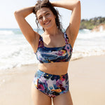 I absolutely love my new bikini. The quality of the fabric, art print, cut and decent underlining are all excellent. I also got different colours and sizes that suit my body shape, top and bottom. The sizing is spot on. and the colour mix totally works together!!